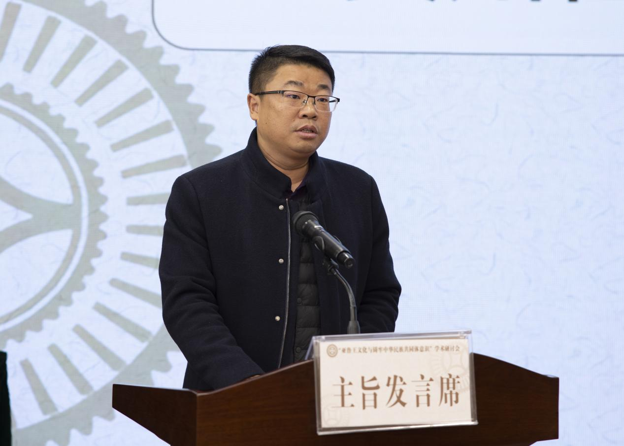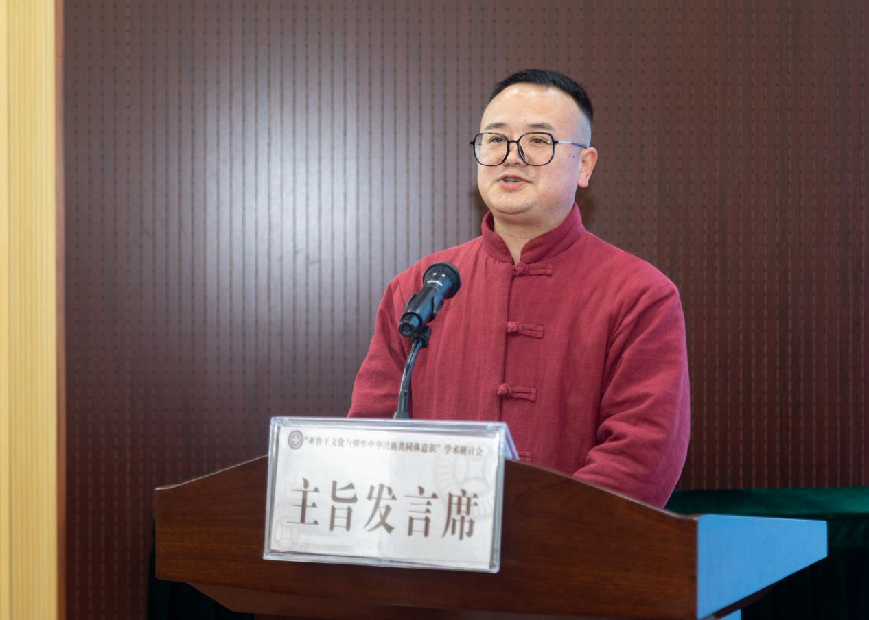 安顺学院党委书记罗荣彬致欢迎辞,指出亚鲁王文化是中华优秀传统文化的重要组成部分,我们要全面贯彻落实党的二十大精神,学深悟透习近平总书记关于“铸牢中华民族共同体意识”“传承中华优秀传统文化”的核心要义,厚植培育中华民族共同体意识的文化基因,把握好各民族优秀传统文化和中华文化的关系,在全面建设社会主义现代化国家新征程中,以中华优秀传统文化的传承和弘扬推动铸牢中华民族共同体意识。