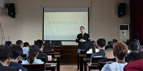 11月21日下午,安顺学院“安顺屯堡历史重访——再现明代世俗生活图景”专题宣讲在学校水管所举行。安顺学院宣传部宣传科科长王智勇副教授主讲,电信学院学生聆听宣讲。宣讲由包永同学主持。