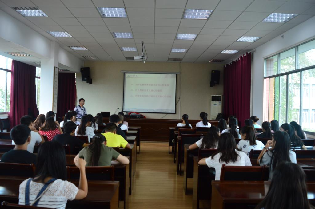 2016年8月29日下午,安顺学院2016年下半年“明礼知耻·崇德向善”道德讲堂首场“凝聚价值共识 汇聚精神力量——如何理解和践行社会主义核心价值观”专题宣讲在学校水管所道德讲堂开展。安顺学院道德宣讲员、安顺学院党委宣传部部长蔡少平教授主讲,人文学院同学聆听宣讲。宣讲由潘微微同学主持。