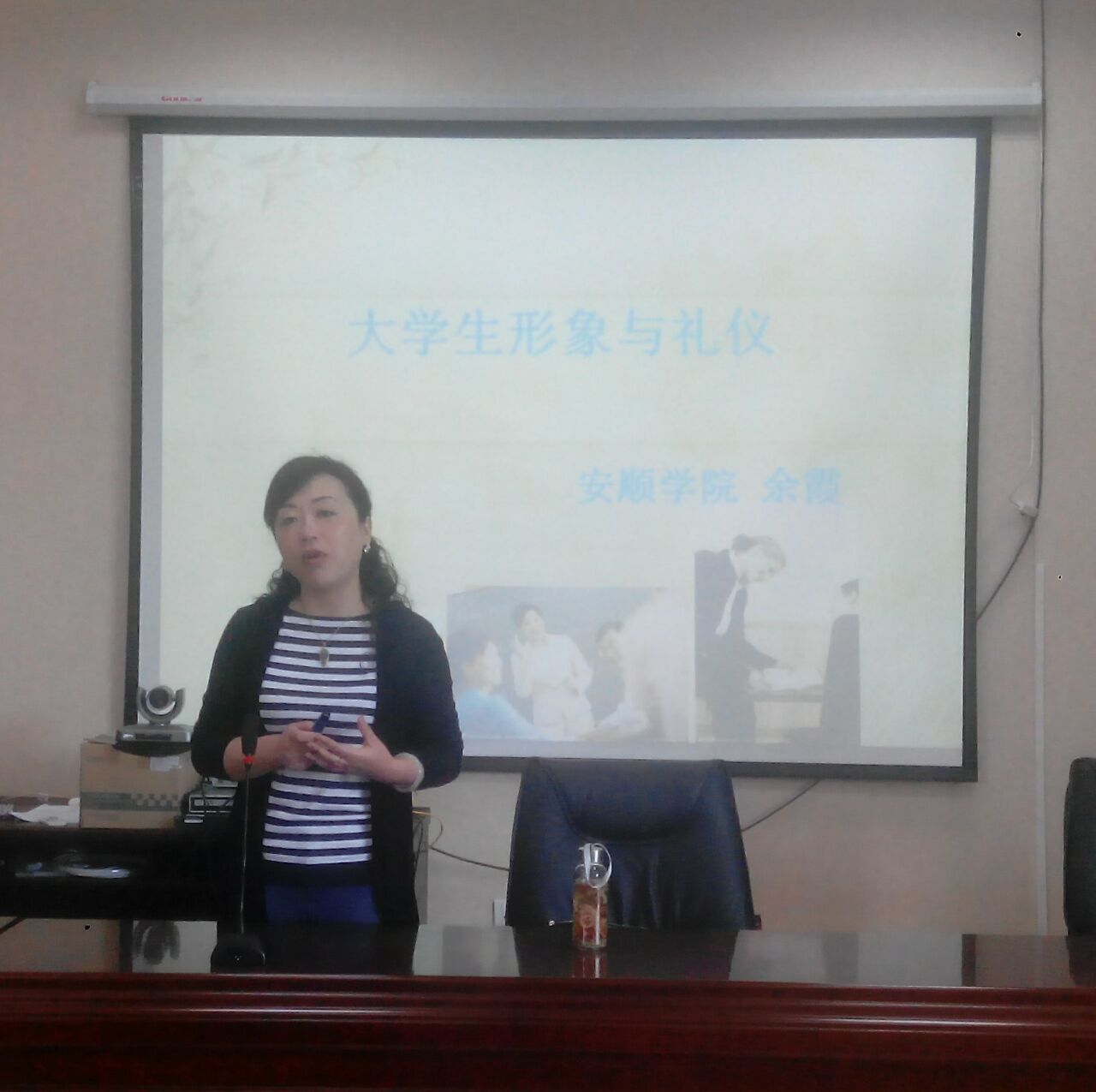 4月11日下午,安顺学院“大学生形象与礼仪”专题道德宣讲在学校水管所道德讲堂开展。安顺学院宣讲员、马克思主义学院副教授余霞主讲,外国语学院学生聆听。宣讲由李淑娟同学主持。
