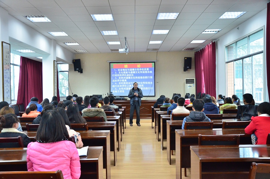12月7日下午,安顺学院“心性与文明”道德宣讲在学校水管所道德讲堂举行。安顺学院道德宣讲员、安顺学院政法学院罗宪志老师主讲,艺术学院同学聆听。宣讲由王祖金同学主持。