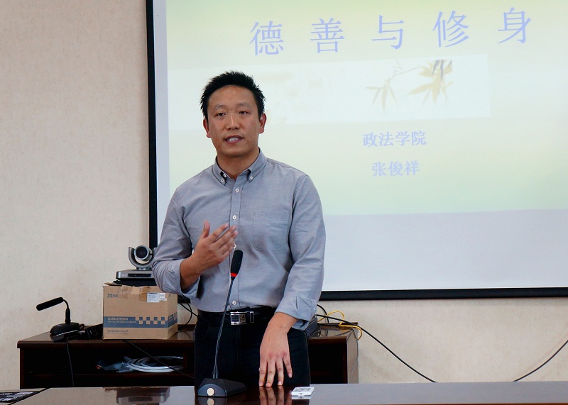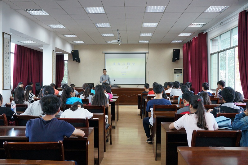 9月28日下午,安顺学院“德善与修身”道德宣讲在水管所道德讲堂开展。安顺学院政法学院张俊祥老师主讲,化学化工学院2015级新生聆听。宣讲由江倩倩同学主持。