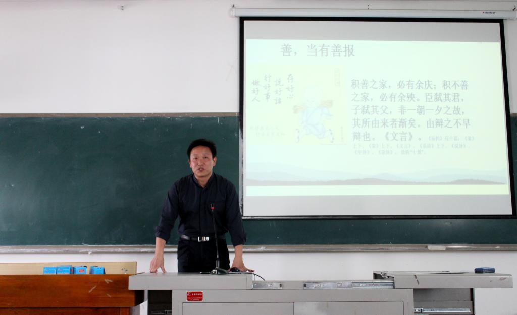 此次讲座脉络清晰、鲜活生动。张俊祥老师通过图片展示和视频播放加深了同学们对修身的理解,彰显了德善与修身的重要性,传递了中国传统美德的正能量。(文/图:学生记者 肖敏/杨飞艳)