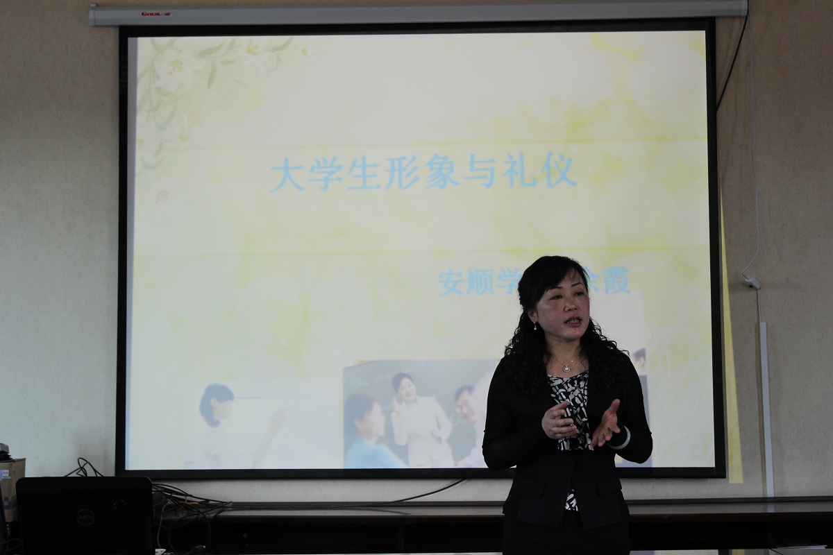 安顺学院道德讲堂“大学生形象与礼仪”专题宣讲现场