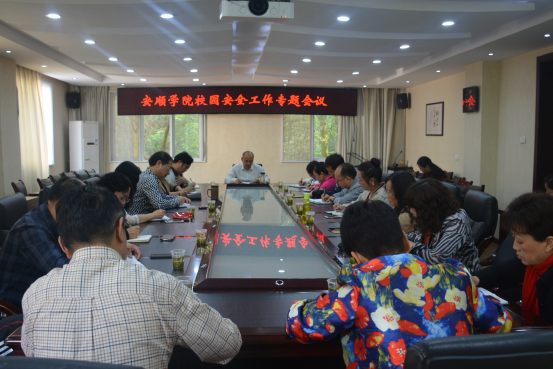 4月28日上午,安顺学院2015-2016学年第二学期第三次校园安全稳定工作会在学校行政楼会议室召开。安顺学院副院长郭本华,各校属学院党总支书记以及学生处、基建处、后勤处、保卫处负责人参加会议。会议由郭本华副院长主持。