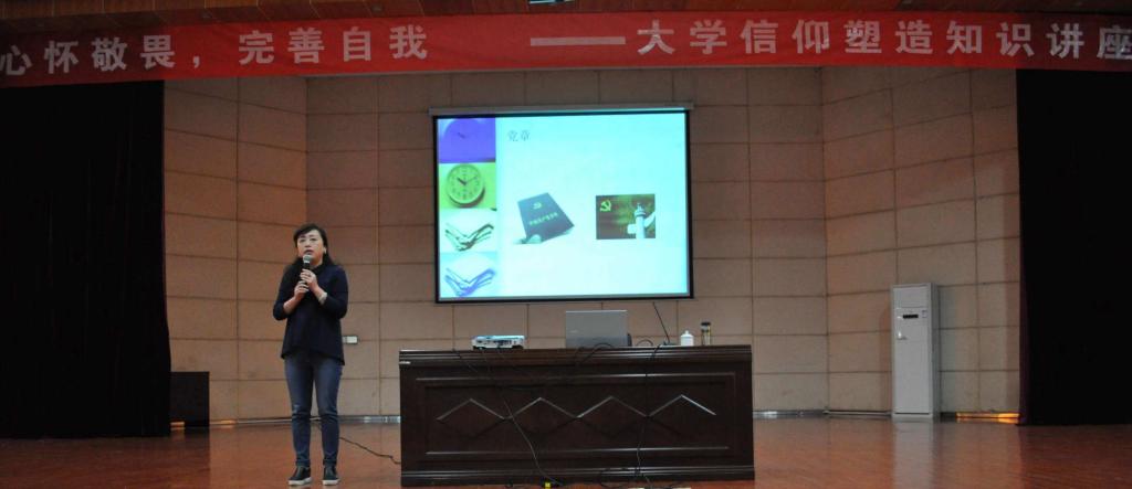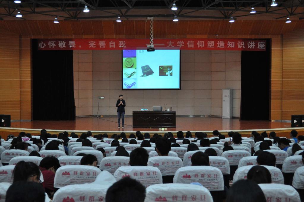 讲座中,余霞老师通过展示PPT、播放音乐和经典案例分析等方式,从“什么是信仰”、“当代大学生应信仰什么”、“敬畏规范、信仰、追求、梦想”等三个方面向同学们阐释了信仰的重要性。整个会场学习氛围浓厚,老师与学员互动积极。
