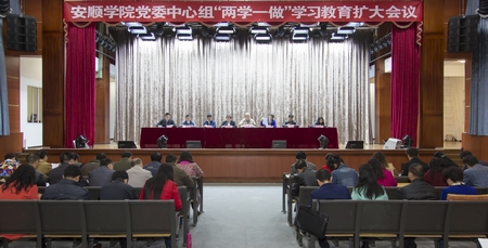 2016年4月25日上午,安顺学院党委中心组在学校大礼堂召开“两学一做”学习教育扩大会议。学校党委委员,正、副处级干部,各党支部书记及党政办、组织部、机关党总支全体党员参加学习。学校党委副书记、院长刘雷主持学习。