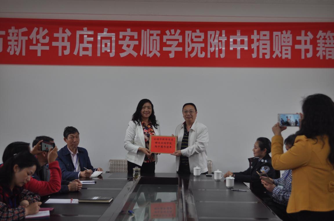 “书籍是人类进步的阶梯”,在安顺学院附中法制副校长郭倩的牵线搭桥下,2016年4月21 日下午,安顺市新华书店总经理李佑华一行到附中举行了图书捐赠仪式。