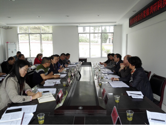 在关岭自治县永宁镇,罗荣彬书记、刘雷院长与镇领导和工作人员座谈。永宁镇相关负责同志介绍了永宁镇的基本情况和目前发展中存在的困难和问题。