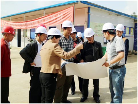 安顺学院党委副书记陶文彩、副院长王芳恒一行到综合实验大楼施工现场调研指导工作