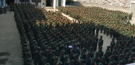疏散演练共进行了两次。首先是防空紧急疏散演练。随着防空警报鸣响,近1400名学生有序撤离教室,用时近4分钟;随后进行第二次演练,用时2分38秒,顺利完成预定目标。