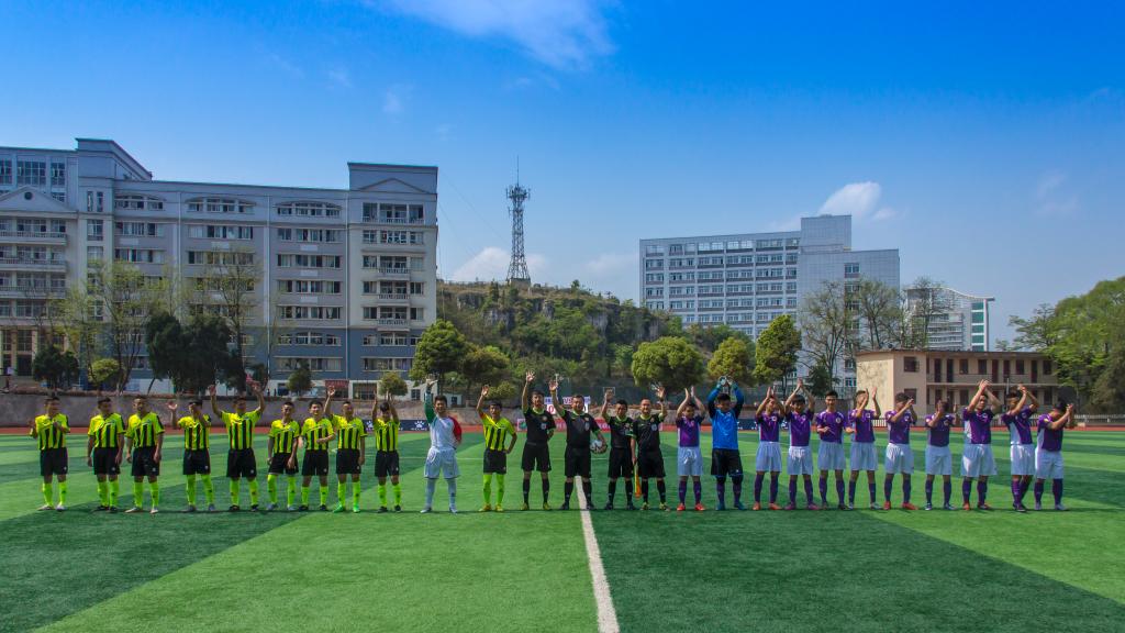 4月9日下午,由贵州省教育厅主办,贵州省学生体育协会、贵州省足球协会承办,装备官方战略合作伙伴KELME卡尔美(中国)有限公司联合举办的2016年贵州省校园足球四级联赛高校超级联赛第三场——安顺学院(主队)VS贵州医科大学(客队)在安顺学院足球场开赛。此次球赛迎来了安顺学院大批的观众,为双方队员加油助威,场面十分壮观。安顺学院党委书记罗荣彬亲临球场,慰问球员、观看球赛、鼓励球员赛出安院人应有的精神风貌。
