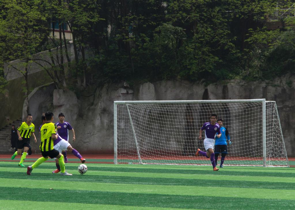 经过十分钟的中场休息,双方球员又回到球场,赛场气氛愈加剧烈。安顺学院的队员很快开展了如潮水般的猛烈反攻,化被动为主动,一直占据着主战场。安顺学院队员运用缜密的队形部署,细腻的脚法多次将球带到对方球门附近,给对方造成很大的威胁,并且几次成功的防守了对方的进攻,观众加油欢呼声响彻整个校园,气氛十分热烈。贵州医科大学最终以1:0险胜安顺学院。