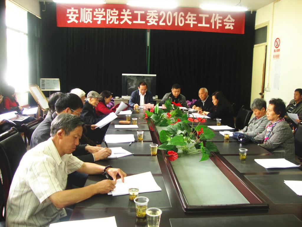 会议传达了贵州省教育系统关工委2016年工作会议暨培训会议精神、安顺学院关心下一代工作委员会2016年工作要点,宣读了安顺学院关于调整关心下一代工作委员会成员的通知。