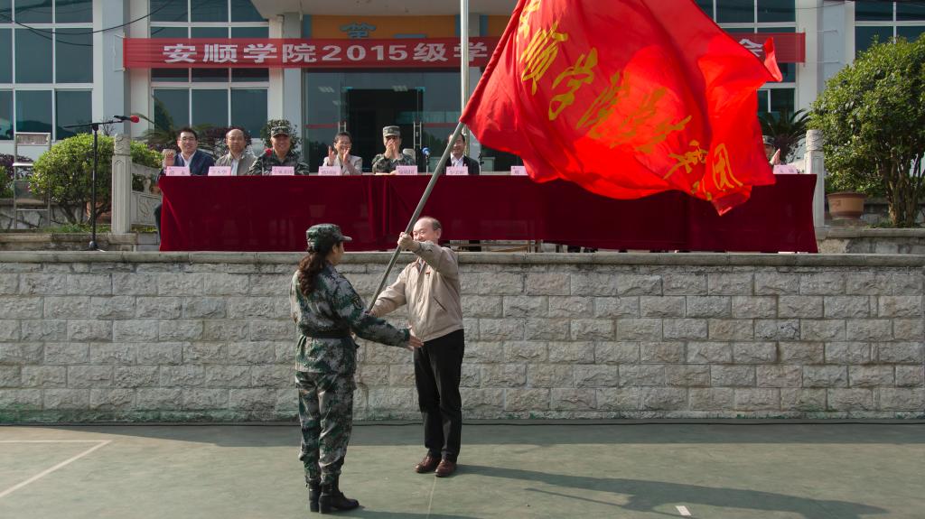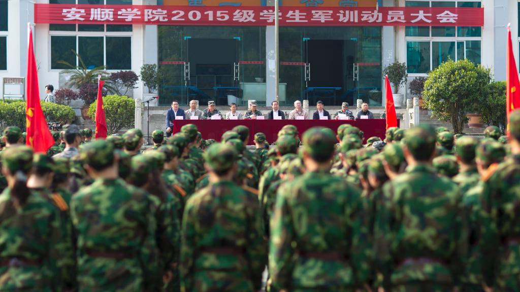 军训动员大会在中华人民共和国国歌声中拉开序幕,罗荣彬书记宣读了《关于成立安顺学院2015级学生军训团的决定》。刘雷院长向军训团授旗。王芳恒政委作军训动员讲话,他希望同学们充分认识军训的目的和意义,提高国防意识,增强爱国情感,增强组织纪律观念,要求同学们尊重教官,虚心向教官学习,珍惜这段军训生活,虚心学习军人的好思想、好作风、好传统,并以此为动力,刻苦学习专业知识,更好地服务人民、奉献社会,要求同学们听从指挥,注意安全。在军训中严格要求自己,发扬“不怕苦、不怕累”的精神,勇于接受艰苦训练,希望同学们时刻注意安全,防止意外发生。