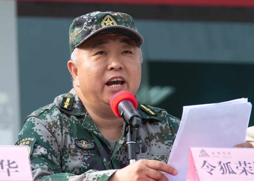 安顺学院副院长、军训团团长令狐荣涛主持军训动员大会