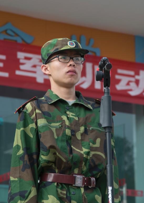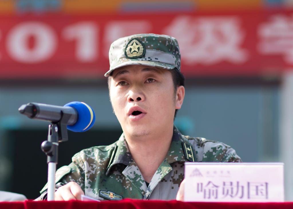 中国人民解放军贵州陆军预备役师某团一营营长、军训团参谋长喻勋国作军训要求讲话,预祝同学们在军训取得优异的成绩,强调一切行动听从指挥、服从教官的正当要求。