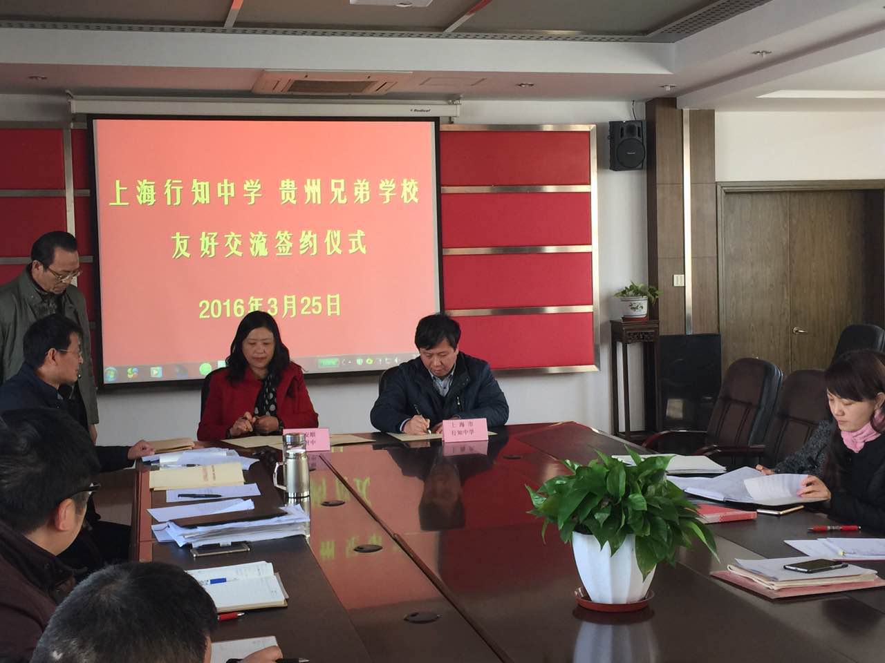 安顺学院附中校长齐娟与上海行知中学签订合作协议