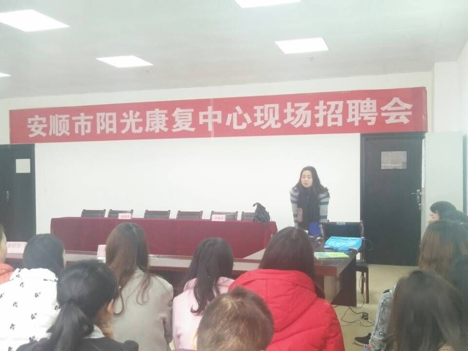 招聘会中,安顺市阳光康复中心鲍老师首先介绍了康复中心的情况、发展趋势、岗位形式,同学们就关心的话题纷纷提问,鲍老师一一解答,部分同学与阳光康复中心达成意向合作,招聘现场气氛高涨。