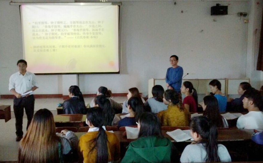 9月24日下午,艺术学院“示范课”活动拉开帷幕,王芳恒副院长到艺术学院课堂,与2014级音乐学专业学生一起听了艺术学院青年教师王钧所授的《中国音乐简史与欣赏》课程。