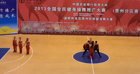 9月17日下午,由国家体育总局体操运动管理中心、贵州省民族事务委员会、贵州省体育局、贵州省教育厅、共青团贵州省委、贵州省老龄工作委员会办公室共同主办的“中国农业银行信用卡杯”2013年全国健身操推广大赛(贵州分区赛)暨多彩贵州民族健身舞大赛在六盘水市体育馆隆重举行。安顺学院代表队表演出色,在民族健身操(舞)、民族轻器械健身操两项比赛中均获一等奖。
