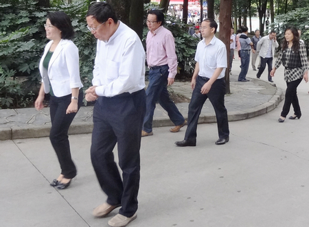 安顺市委常委、市委宣传部部长杨晓曼(第一排左)、安顺市人民政府副市长罗荣彬(第二排右)在安顺学院党委书记李彦西教授(第一排右)、院长李建军教授(第二排左)陪同下走访查看校园。