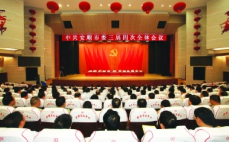 6月27日,安顺市委三届四次全会在市文化中心召开。会议的主要任务是:全面贯彻党的十八大和省委十一届三次全会精神,坚定不移地落实加速发展、加快转型、推动跨越主基调,毫不动摇地实施工业化和城镇化主战略,奋力打造人才聚集洼地和科技创新高地,为同步小康提供强大的人才和科技支撑,在激情追求中国梦的伟大征程中努力实现安顺的小康梦。
