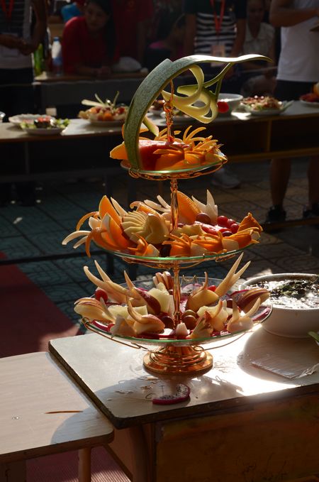 本次活动共有来自各系的12支队伍参赛,主要包括包饺子大赛、展板大赛、水果DIY、厨艺大比拼等环节,由评委及大众评委投票评选出获奖名次。本次活动设一等奖1名,二等奖2名,三等奖3名。