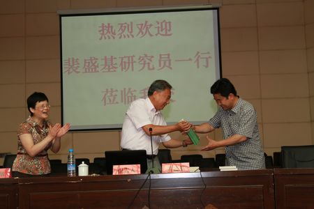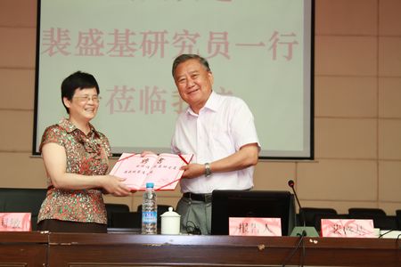 副院长熊国敏教授代表学校为裴盛基教授颁发客座教授聘书。裴盛基教授向我校赠送了自著的植物学方面的书籍。