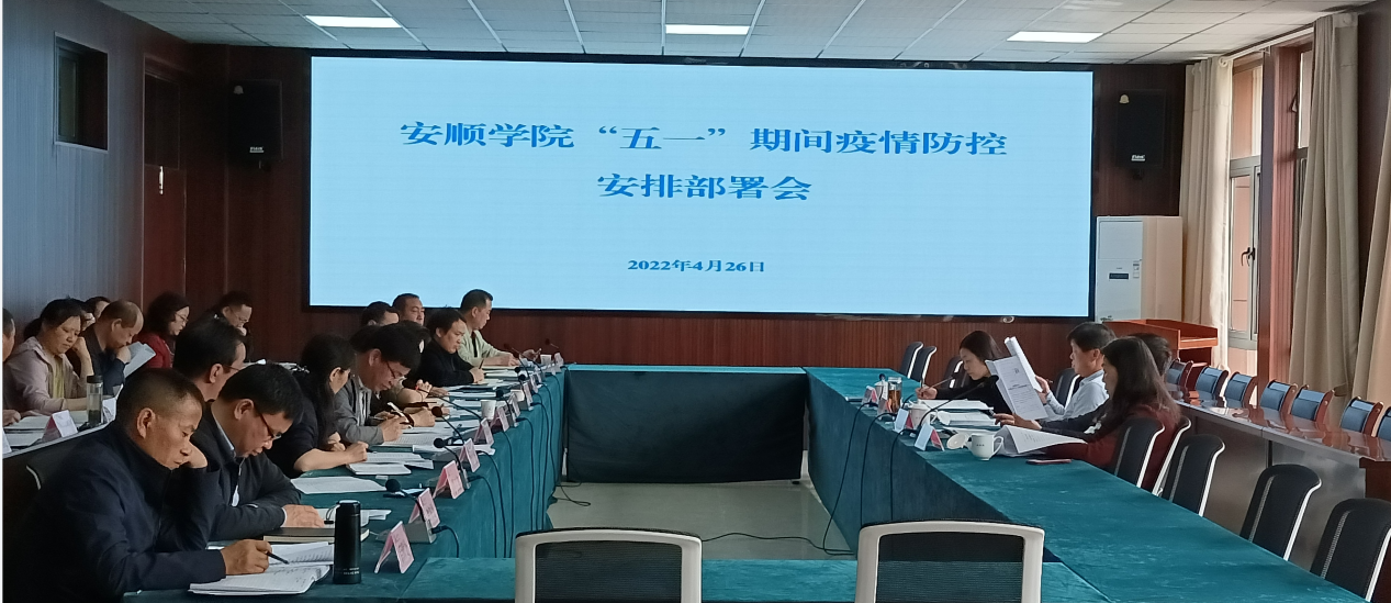 4月26日上午,安顺学院“五一”期间疫情防控安排部署会在安道楼第一会议室召开,学校领导班子成员、各基层党委书记及相关职能部门负责人参加会议。部署会由学校党委副书记陶文彩主持。