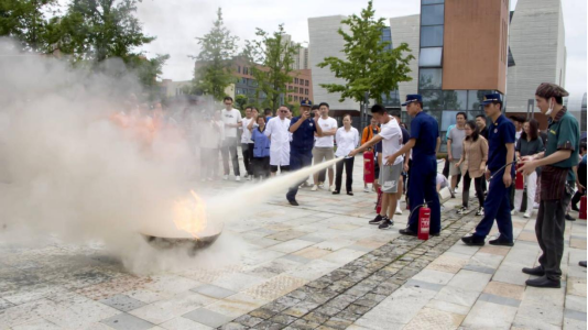 师生代表现场实操扑灭初期火灾