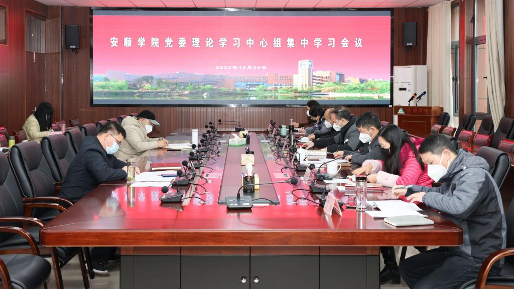 2022年12月23日,安顺学院召开党委理论学习中心组集中学习会议。校领导班子成员及有关职能部门主要负责人,各基层党委书记参加学习。安顺学院党委书记罗荣彬主持学习并提出要求。