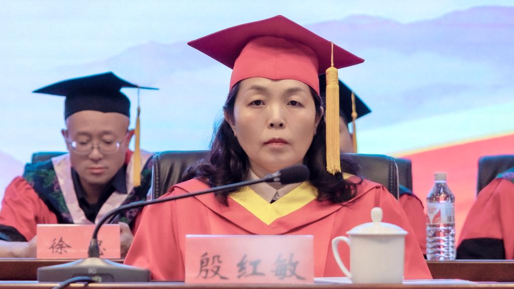 安顺学院党委委员、副校长殷红敏宣读毕业证、学士学位获得者名单