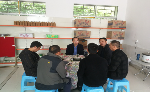 安顺学院党委书记罗荣彬(左三)听取驻村工作组近期的工作汇报