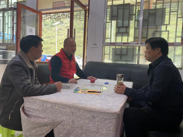 陈云坤在平寨村服务中心和两位村干部进行了调研座谈,随后实地考察了扶贫工作进展情况。