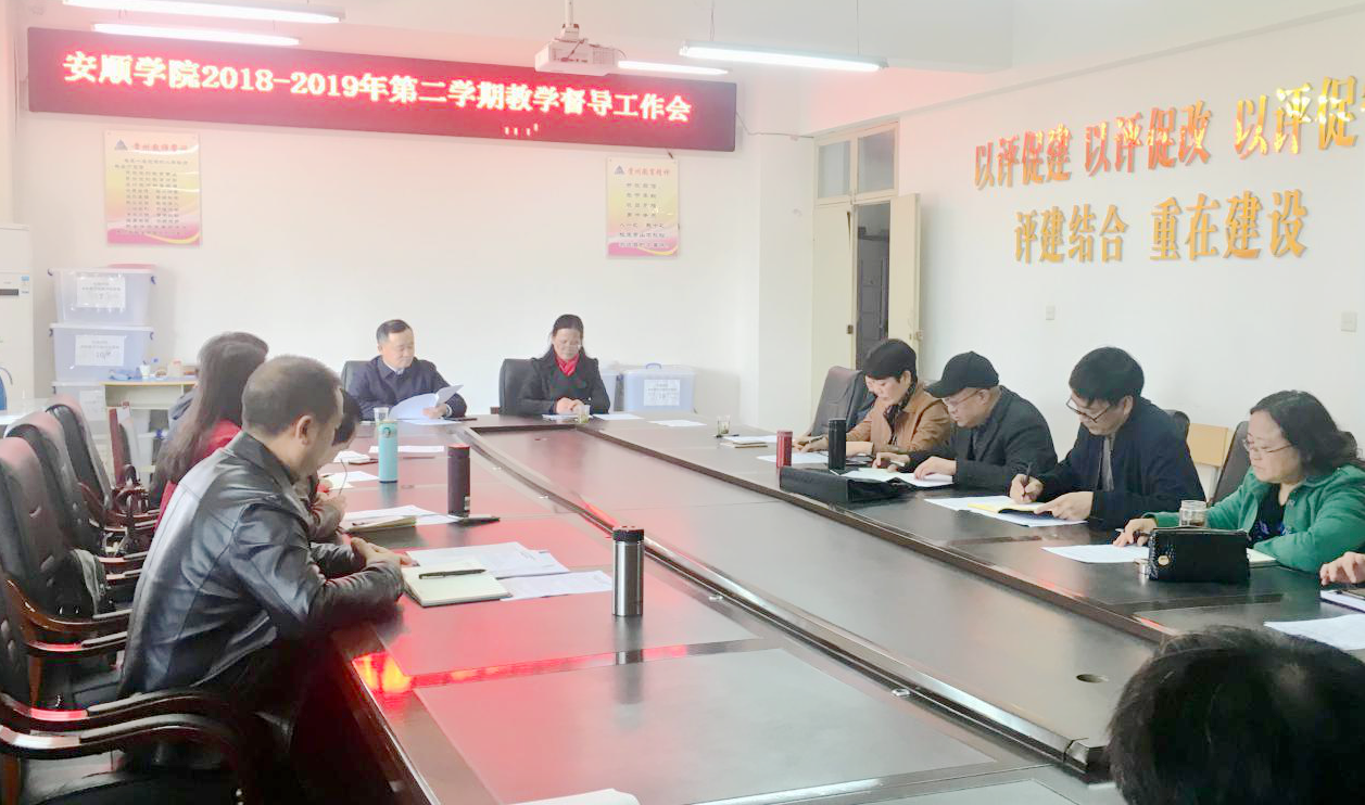 近日,安顺学院2018-2019学年第二学期第一次教学督导工作会在教务处四楼会议室召开。安顺学院吴次南校长、副厅长级领导熊国敏及校级督导团成员参会。