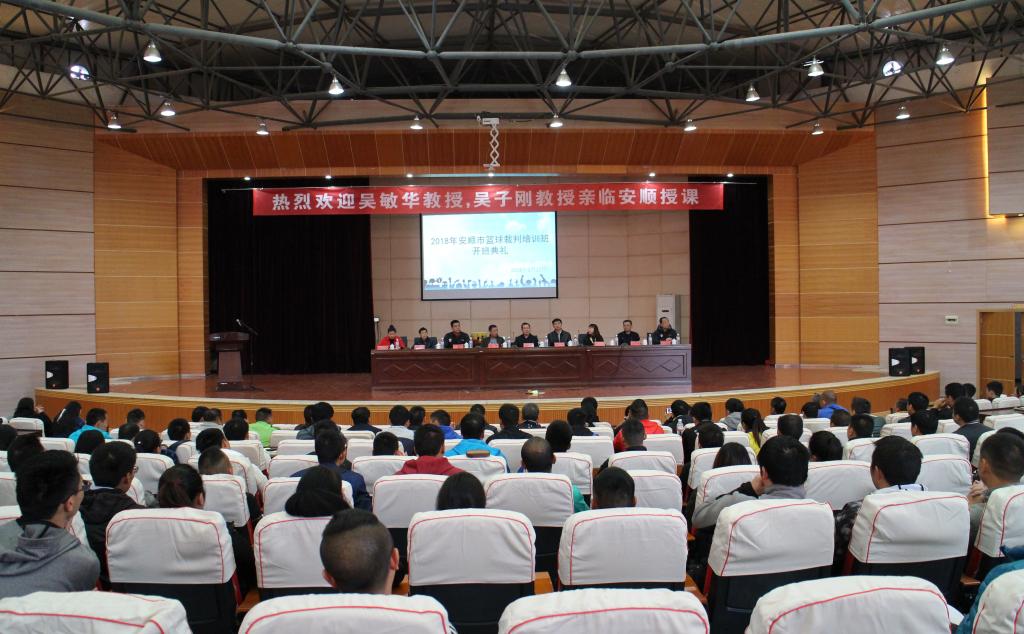 为进一步贯彻落实《中共中央国务院关于加强青少年体育增强青少年体质的意见》、《国务院办公厅关于强化学校体育促进学生身心健康全面发展的意见》和《贵州省体育“十三五”规划》等文件精神,2018年3月22日,安顺市篮球裁判员培训开班典礼仪式在安顺学院学术报告厅举行。