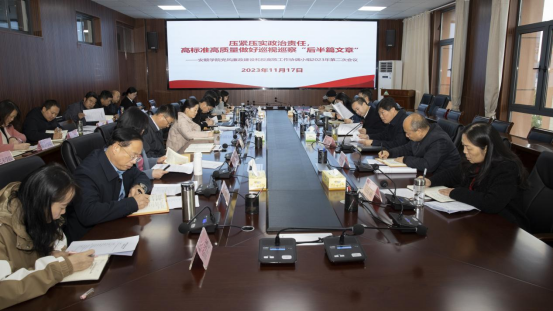 2023年11月17日上午,安顺学院党风廉政建设和反腐败工作协调小组2023年第二次会议在安道楼五楼第一会议室召开,会议主题为“压紧压实政治责任,高标准高质量做好巡视巡察‘后半篇文章’”。安顺学院党委书记罗荣彬和有关校领导出席会议,巡察办、反腐败协调小组成员部门、巡视整改牵头部门、二届党委第三轮被巡察单位党委等有关单位负责人参会。会议由党委副书记、校长陈云坤主持。