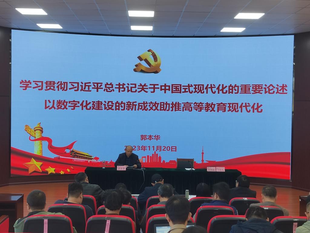 郭本华强调,习近平总书记关于中国式现代化的重要论述,深刻阐述了中国式现代化的一系列重大理论和实践问题,提供了推进中国式现代化的思想方法和工作方法;高等学校肩负着立德树人的重大任务,在推进中国式现代化建设的新征程上同样肩负着重大的政治责任;全力以赴加快我校数字化建设是学习贯彻习近平总书记关于现代化建设重要论述的必然要求和实际行动,切实以我校数字化建设的新成绩为我国的教育现代化,为高等教育的现代化贡献力量。
