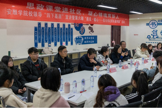 为全面贯彻落实“时代新人铸魂工程”和“四下基层”工作要求,推动学校学习贯彻习近平新时代中国特色社会主义思想主题教育走深走实,充分发挥“一站式”学生社区的思政育人功能,12月6日晚,安顺学院开展学校领导“四下基层”宣讲暨第六期“遇见·毓心——我与书记校长面对面”主题活动。本期主题是“思政课堂进社区,凝心铸魂育新人”。