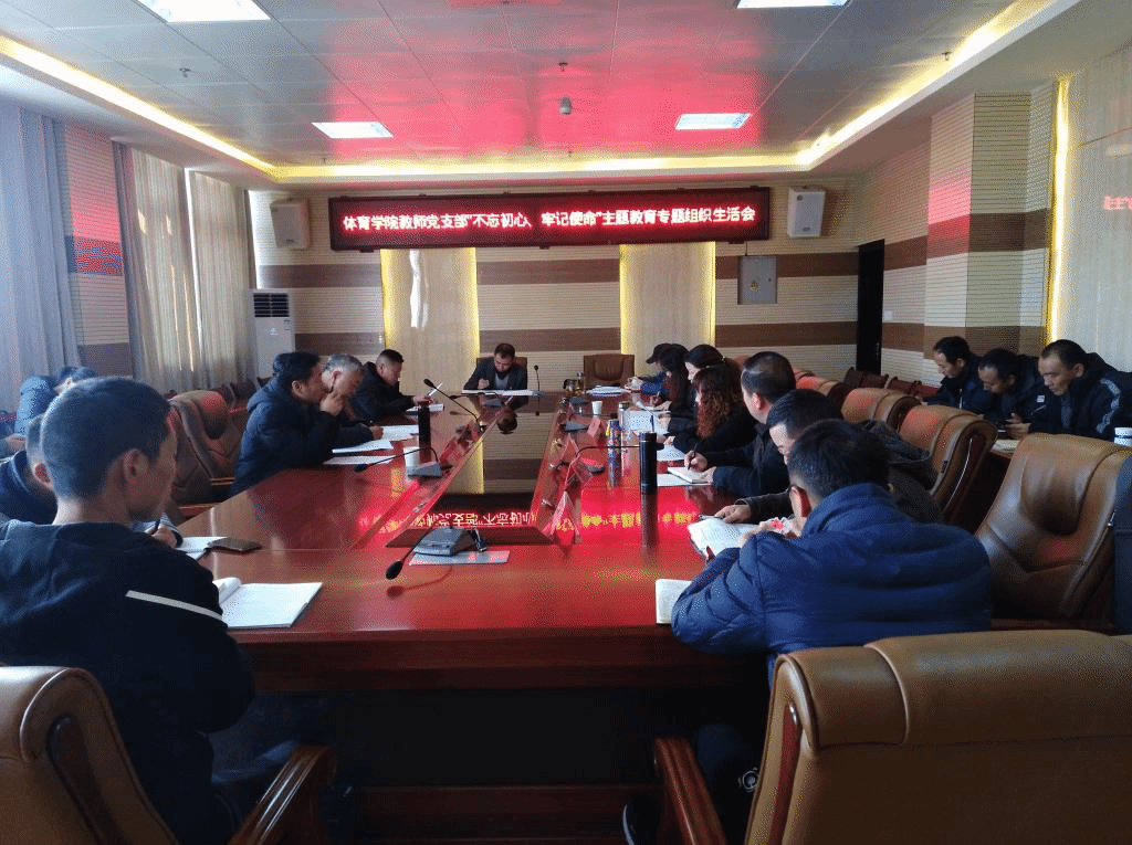 2019年12月10日上午,按照学校党委“不忘初心、牢记使命”主题教育办公室的部署要求,体育学院教师党支部在特教大楼六楼会议室召开“不忘初心、牢记使命”主题教育专题组织生活会。安顺学院党委“不忘初心、牢记使命”主题教育第五巡回指导组组长、安顺学院副校长令狐荣涛一行到会指导,体育学院教师党支部全体成员参加会议。会议由体育学院党委副书记、教师党支部书记林金茹主持。
