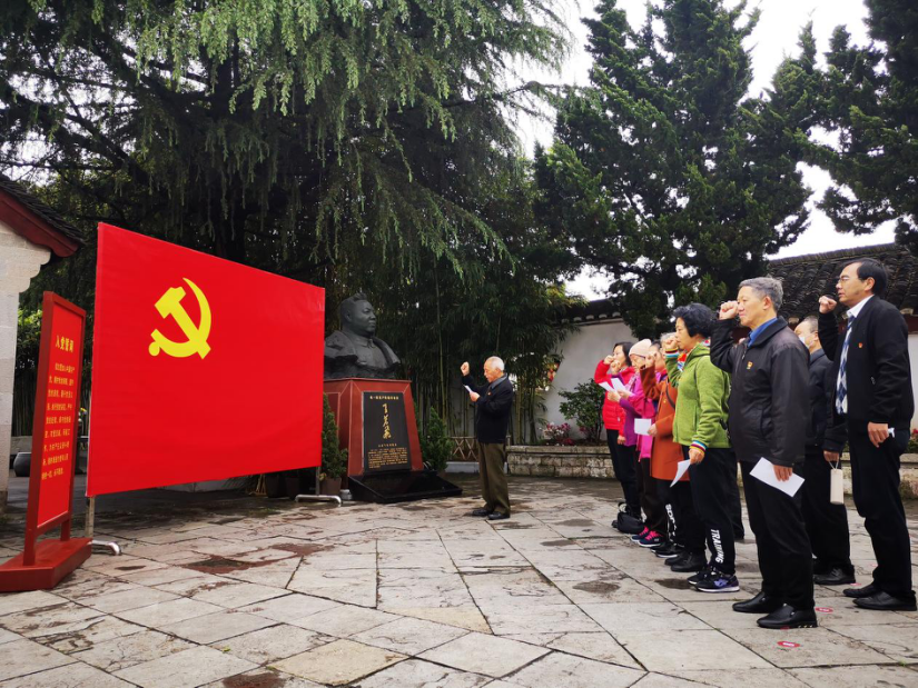 党员同志们参观了王若飞故居和王若飞纪念馆,在王若飞塑像和党旗前,大家庄严地举起右手,在杨通邦老书记的带领下,重温了入党誓词。