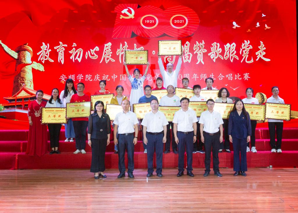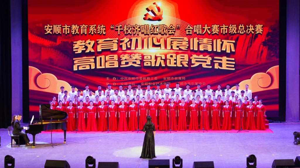 中国共产党在中国近现代史的风云激荡中,留下了无数珍贵的红色印记。黔中大地上,红色基因绵延赓续,红色血脉代代相传。王若飞、黄齐生等老一辈革命家和历代文化精英赋予安顺这片土地深厚的底蕴。为充分挖掘安顺红色基因,拓展党史学习教育形式,加强党史学习教育的影响范围和影响力,传承红色血脉,厚植爱党爱国情怀,在中国共产党成立100周年之际,我校结合省委“牢记殷切嘱托、忠诚干净担当、喜迎建党百年”专题教育和市委作风整顿月行动,开展喜迎建党 100 周年党史学习教育系列活动——“一歌一剧一展”。师生原创歌曲《一切要为人民打算》万人传唱。红色舞台剧《王若飞》演出5场,累计观演人数达4000余人次,社会反响强烈。庆祝建党100周年美术作品展收到作品近300件,参观师生达4000人,得到人民网等新闻媒体的广泛赞誉。“一歌一剧一展”系列活动尤其是《王若飞》红色舞台剧,让全校师生深受教育,把党史学习教育的无穷动力转化为为师生办实事的干劲和热情,推动我校十件民生实事高质量完成,师生满意度、获得感、幸福感大幅度提升。