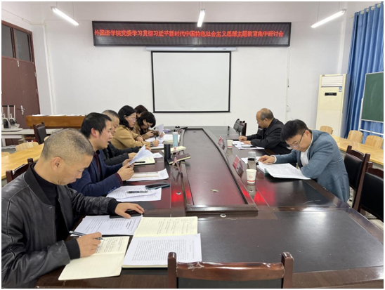 外国语学院党委理论学习中心组学习和“深入开展学习贯彻习近平新时代中国特色社会主义思想主题教育”集中研讨会会场