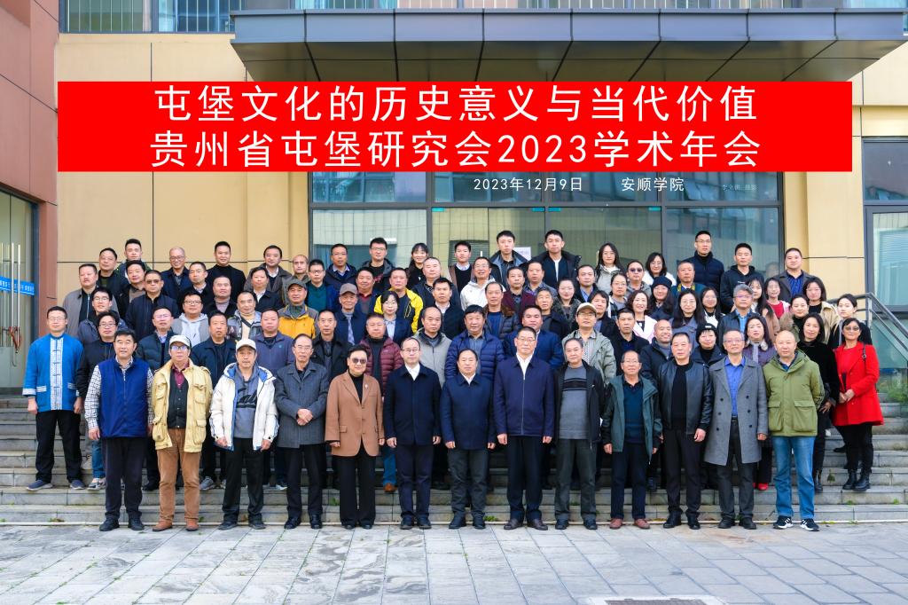 2023年12月9日,由贵州省屯堡研究会、安顺学院贵州省屯堡文化研究中心主办,安顺学院博物馆、安顺学院旅游学院协办的“屯堡文化的历史意义与当代价值”2023年贵州省屯堡研究会学术年会在安顺学院举行。安顺学院党委书记罗荣彬,贵州省社科联党组书记、常务副主席张云泓,安顺市人民政府副市长汪文学出席年会。贵州省屯堡研究会会长、安顺学院教授吴羽,贵州省屯堡研究会副会长、贵州师范学院教授陈志永,贵州省屯堡研究会顾问、教授孙兆霞,中国明史学会屯堡分会副会长、安顺学院教授吕燕平,贵州省屯堡研究会副会长兼秘书长、安顺学院教授张定贵,安顺学院乡村振兴研究中心主任孟凡松教授,省屯堡研究会顾问李晓,怀化学院副教授张建,贵州民族大学副教授宗世法,贵州师范大学副教授汪青梅,贵州省文史馆特聘馆员杜应国,天龙屯堡旅游的开拓者陈云等全省各兄弟院校、省内外专家及会员100余人参加年会。