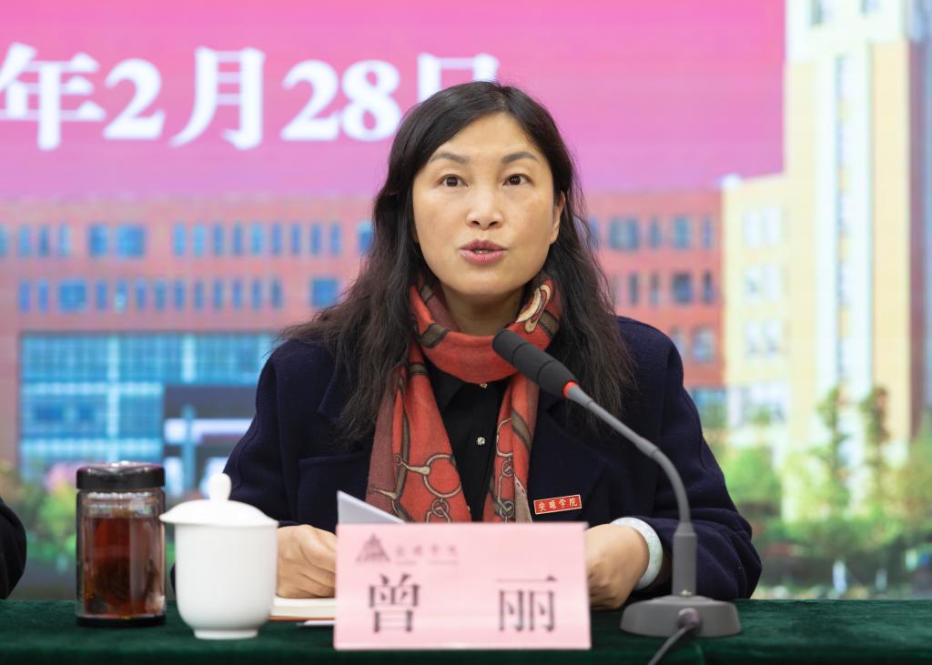 安顺学院校长曾丽以“奋力开启新征程 斗志昂扬谱新篇 以龙马精神全力以赴推进学校改性更名”为题作讲话