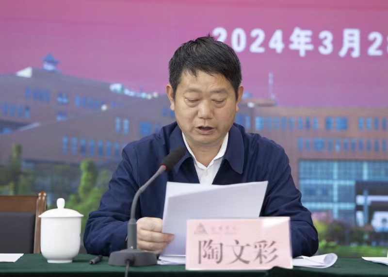 2024年3月28日下午,安顺学院在安道楼阶梯会议室召开2024年上半年思想政治工作暨“三全育人”工作推进会,坚持为党育人、为国育才的初心使命,落实立德树人根本任务。安顺学院党委书记罗荣彬、校长曾丽、党委副书记陶文彩,党委委员、副校长郭本华,党委委员、纪委书记、监察专员蔡红英,党委委员、副校长韦英,副校长张来,各基层党委书记,各职能部门负责人参加会议。会议由陶文彩主持,罗荣彬作讲话。