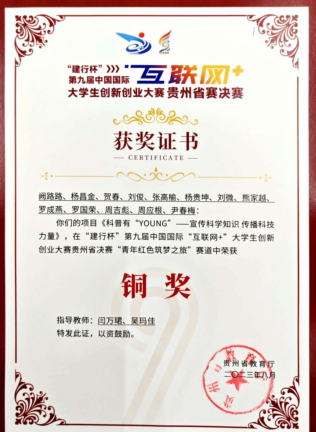 学生获奖证书