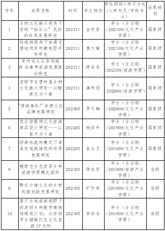 学院科研工作成绩斐然,一系列具有重大影响力的研究成果如雨后春笋般涌现,不断推动学院学科专业、硕士点建设,服务于学校更名转型发展。近年来,旅游管理专业硕士点建设取得了重大突破,拥有贵州省高校乡村振兴研究中心、屯堡文化研究中心、亚鲁王研究中心、三线文化研究中心等4个;亦有新型城镇化建设与乡村振兴研究省创新团队、旅游产业创新生态系统研究创新团队等省十大创新团队2个;“贵州省屯堡文化传承与旅游发展2011协同创新中心”“贵州省乡村振兴2011协同创新中心”2个。承担国家级、省部级项目等各级各类项目30余项,横向项目20余项,总经费突破1000万元。发表SCI、SSCI、CSSCI论文10余篇,出版著作20余部。省部级学术成果奖10项。承担政府、企业相关横向项目20余项。咨政报告得到省市领导批示20余件。科研成果综合性强,质量较高。
