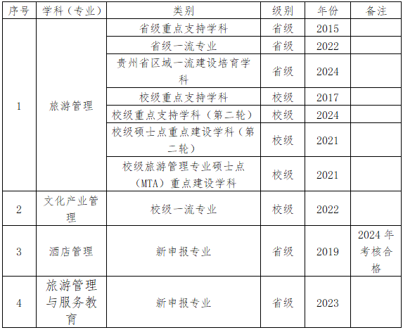 表1:旅游学院学科(专业)建设历史沿革